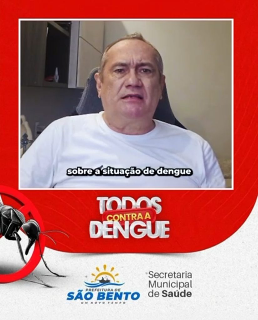 O prefeito de São Bento, Dino Penha, emitiu um alerta à população após a confirmação da circulação da Dengue sorotipo