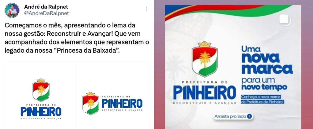 O Prefeito eleito de Pinheiro André da RalpNet, apresentou atraves de suas redes socais oficialmente a logomarca e identidade visual da gestão. Com o slogan “Reconstruir e Avançar”, a iniciativa simboliza o compromisso da nova administração em revitalizar o município e resgatar o orgulho dos pinheirenses.