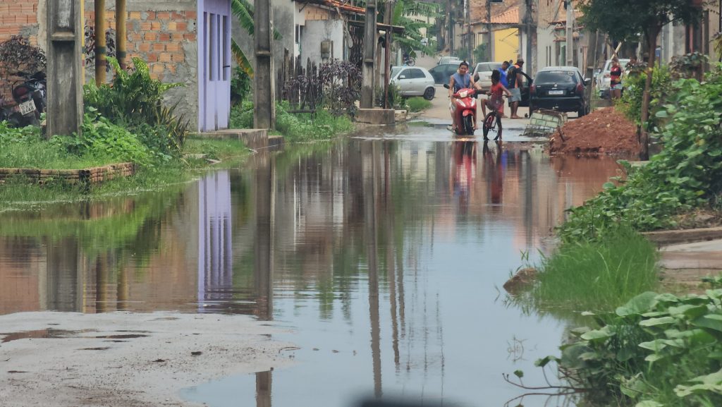 Os tradicionais pontos de alagamento já apresentam dificuldades para pedestres, motoqueiros e motoristas. A via que liga o bairro do Campinho à Matriz está parcialmente tomada pelas águas, e o acesso a estabelecimentos como os restaurantes Maria Santa, Faveira e Náutico está comprometido. No Sítio Bar, a cheia ameaça diretamente as residências, principalmente a única via de entrada e saída do bairro, um ponto crítico.