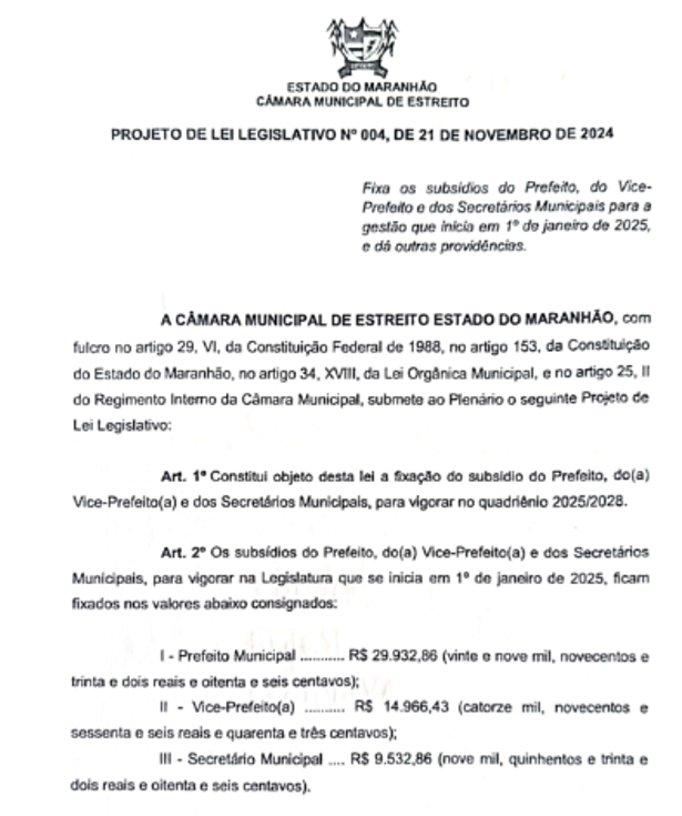 receber R$ 14,9 mil e secretários municipais, que terão remuneração de R$ 9,5 mil reais.